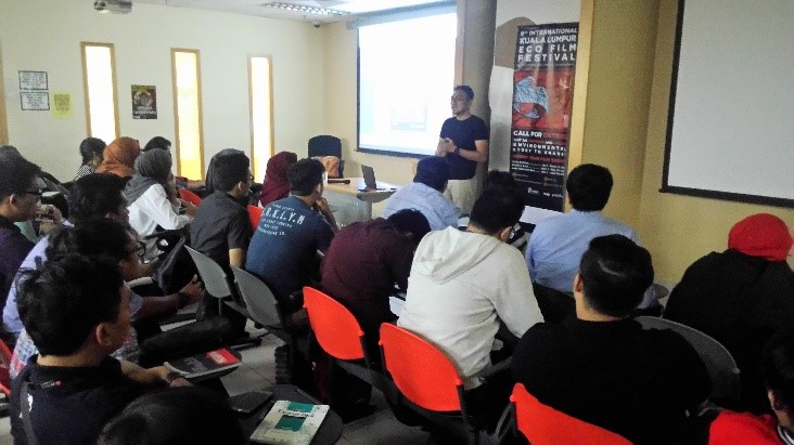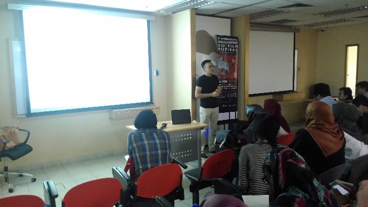 Mr. Fadly began with an introduction about EcoKnights and 9th International Kuala Lumpur Eco Film Fest. He also explained all category available for the KLEFF2016 such as feature film, documentaries, short film, animations, and public services announcement (PSA). Various awards have been stated during the film screening such as Best Feature Film, Best Short Documentary, Best Short Film, Best Animation, Best PSA, Special Jury Awards, and possibly Young Filmmaker Category, which targeting participants from university level. Some video that have been screened are ‘Go Green’ (PSA category), ‘Save Water, Share Happiness’ and ‘Sunset Over Selungo’.