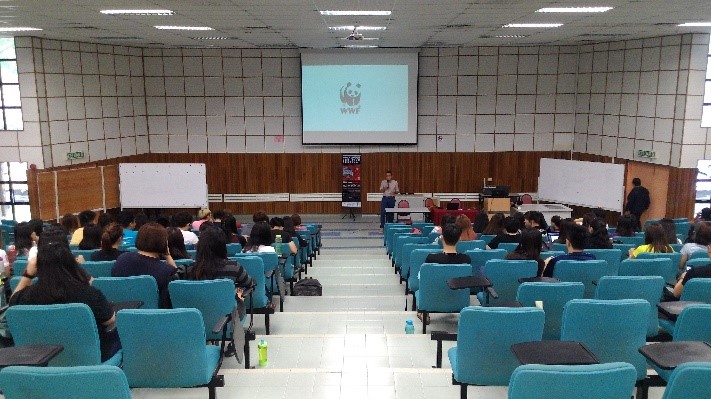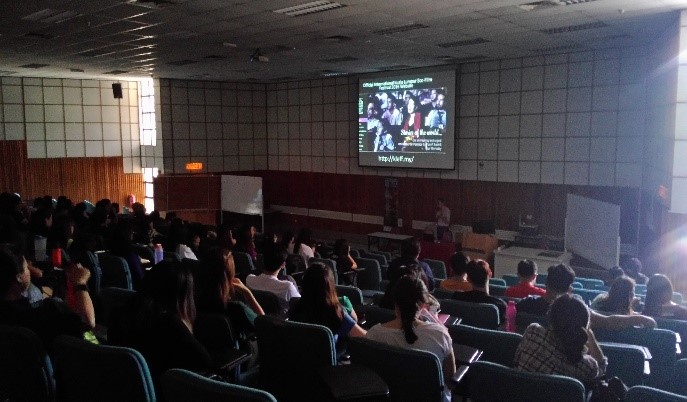 Mr. Fadly began with an introduction about EcoKnights and 9th International Kuala Lumpur Eco Film Fest. He also explained how the video submission could be done online through KLEFF official website with all categories available for the KLEFF2016 such as feature film, documentaries, short film, animations, and public services announcement (PSA). He also added two special categories for this year’s festival, UNDP Energy Efficiency Category and Young Filmmaker Award, which is a special category exclusively university partners. Throughout the roadshow, EcoKnights showcased plenty videos including past year videos to provide more understanding to the students on what they can produce for the festival such ‘Go Green’ (PSA category), ‘Save Water, Share Happiness’ and ‘Sunset Over Selungo’.