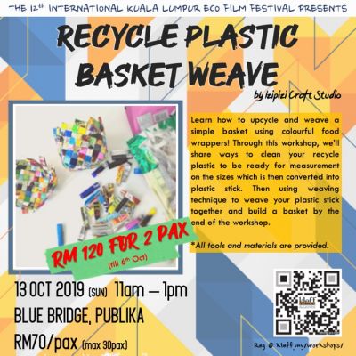 Learn how to upcycle and weave a simple basket using colourful food wrappers! Through this workshop, we’ll share ways to clean your recycle plastic to be ready for measurement on the sizes which is then converted into plastic stick. Then using weaving technique to weave your plastic stick together and build a basket by the end of the workshop.