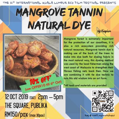 Mangrove forest is extremely important for the protection of our coastlines, it is also a rich ecosystem providing rich natural recourses. Mangrove tannin dye is making use of the bark of the trees to make into dye bath for dyeing fabric in the most natural way, this dyeing method was used by the local fishermen along the west coast of Malaysia to strengthen their fibrous fishing nets back then. Now we are combining it with tie dye technic to turn this old wisdom into an art form.The workshop covers