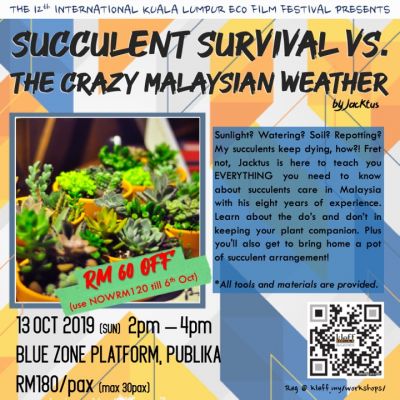 Sunlight? Watering? Soil? Repotting? My succulents keep dying, how?! Fret not, Jacktus is here to teach you EVERYTHING you need to know about succulents care in Malaysia with his eight years of experience. Learn about the do’s and don’t in keeping your plant companion. Plus you'll also get to bring home a pot of succulent arrangement!