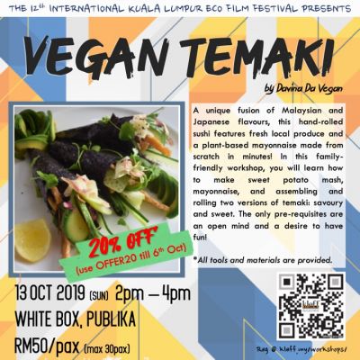 A unique fusion of Malaysian and Japanese flavours, this hand-rolled sushi features fresh local produce and a plant-based mayonnaise made from scratch in minutes! In this family-friendly workshop, you will learn how to make sweet potato mash, mayonnaise, and assembling and rolling two versions of temaki: savoury and sweet. The only pre-requisites are an open mind and a desire to have fun!
