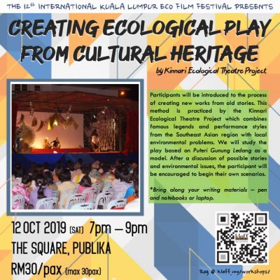 Participants will be introduced to the process of creating new works from old stories. This method is practiced by the Kinnari Ecological Theatre Project which combines famous legends and performance styles from the Southeast Asian region with local environmental problems. We will study the play based on Puteri Gunung Ledang as a model. After a discussion of possible stories and environmental issues, the participant will be encouraged to begin their own scenarios.